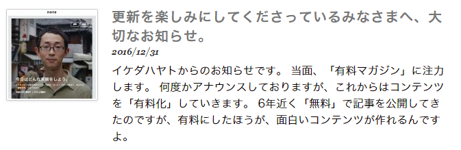 一昨年、東京から高知県へ移住した、あの有名なブロガーイケダハヤト先生が、記事を書く場をとうとう「ブログからnoteへ移す」と発表されました。
